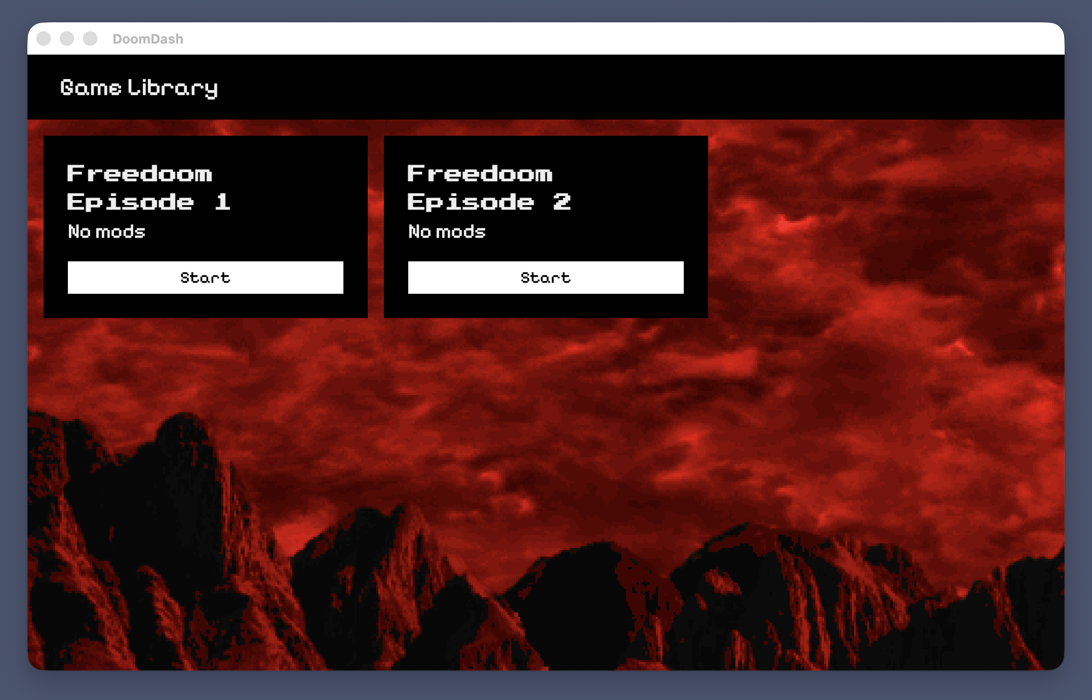 DoomDash(name is not final, but has a rationale) is a launcher, inspired by SSGL and GZDeck launchers. It's goal is to provide entertaining vibe and be accessible to the players who are new to classic doom territory.